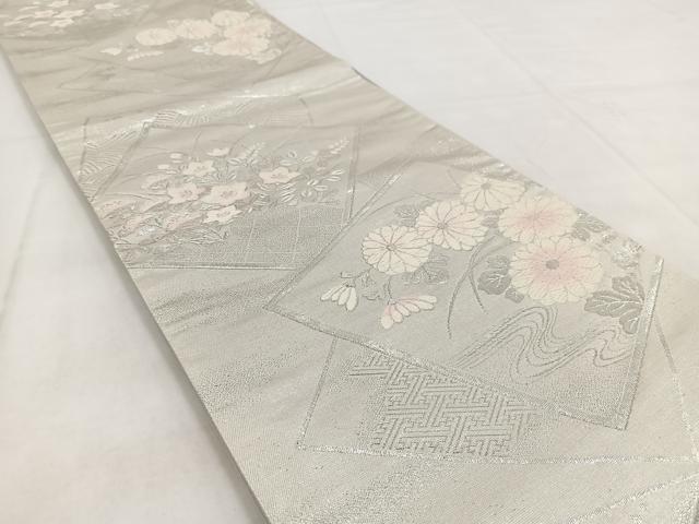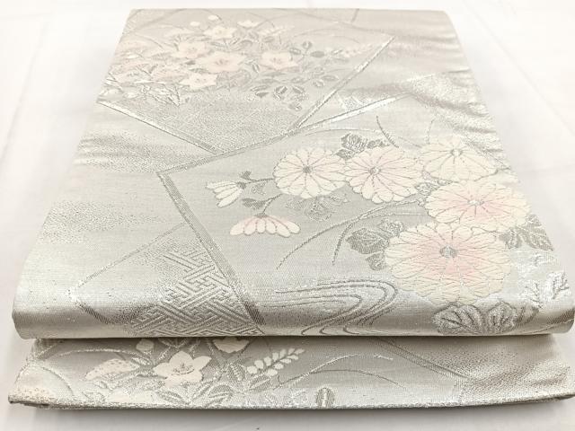 Heiwaya Kimono ◎ Six-panel patterned obi, Tang weave, overlapping autumn grass pattern, silver thread, pure silk, exquisite item BAAW8634yc