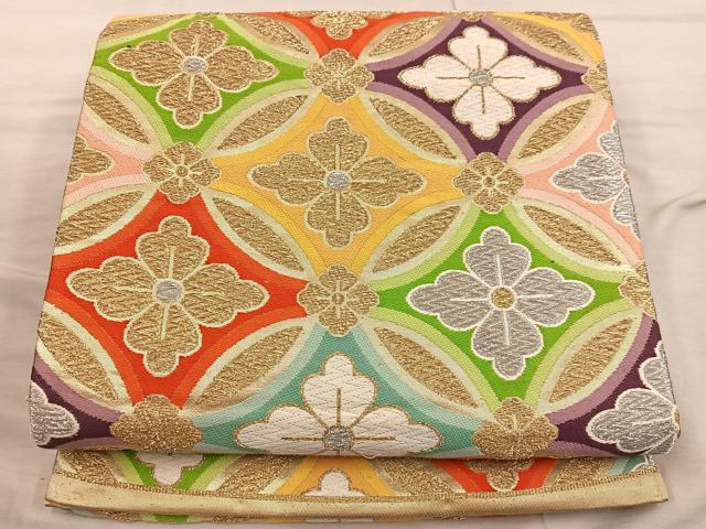 Heiwaya Kimono ◎ Six-panel patterned obi, Tang weave, Shippo flower pattern, gold and silver thread, pure silk, exquisite item BAAX4450mz