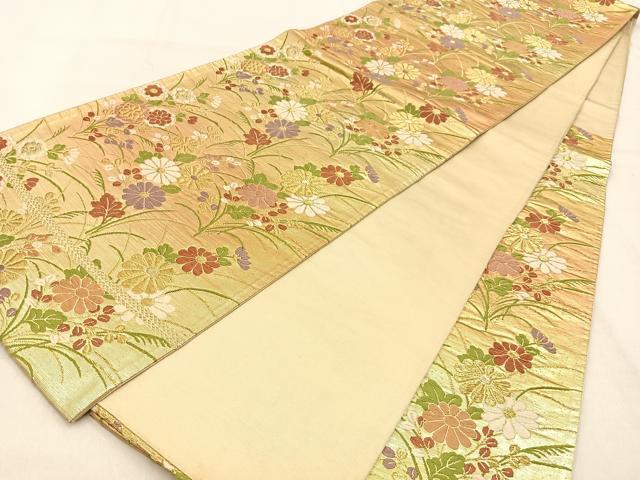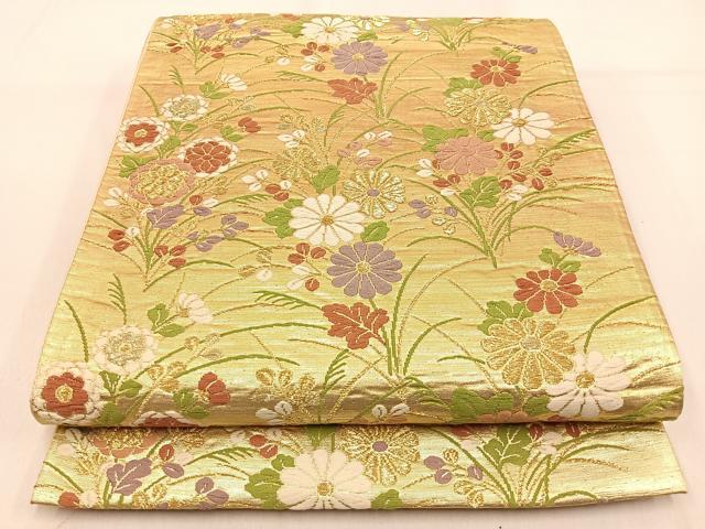 Heiwaya Kimono ◎ Six-pass pattern obi, Karaori, chrysanthemum design, gold thread, pure silk, exquisite item BAAW0723hj