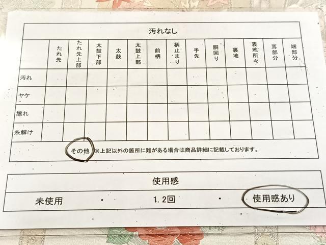 着物の状態をより分かりやすくお伝えするために、汚れチェックシートの英訳版を作成致しました。