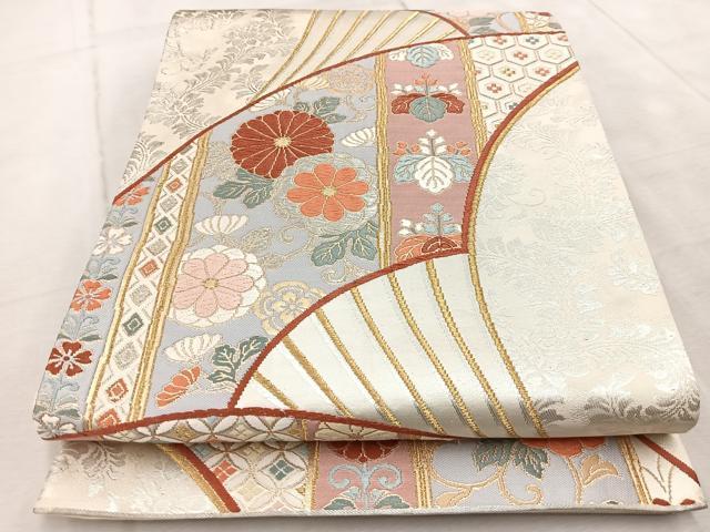 Heiwaya Kimono ◎ Six-pass pattern obi, Karaori, fan chintz floral design, gold and silver thread, pure silk, exquisite item, BAAV4515yc