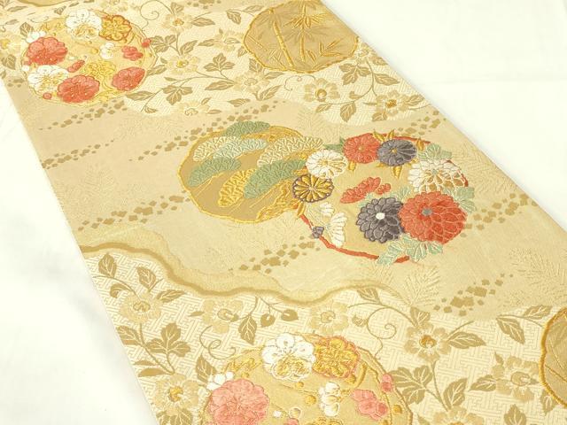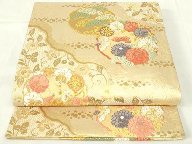Heiwaya Kimono ◎ Six-pass pattern obi, Karaori, Michinaga flower circle design, pine, bamboo, and plum, gold thread, pure silk, exquisite item, DAAZ9126qp
