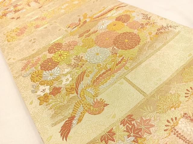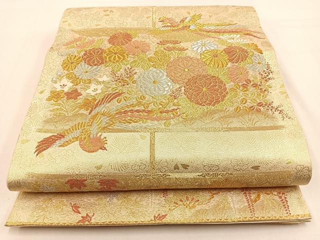 Heiwaya Kimono ◎ Six-pass pattern obi, Karaori, phoenix flower design, gold and silver thread, pure silk, exquisite item BAAW0142hj