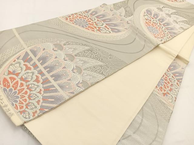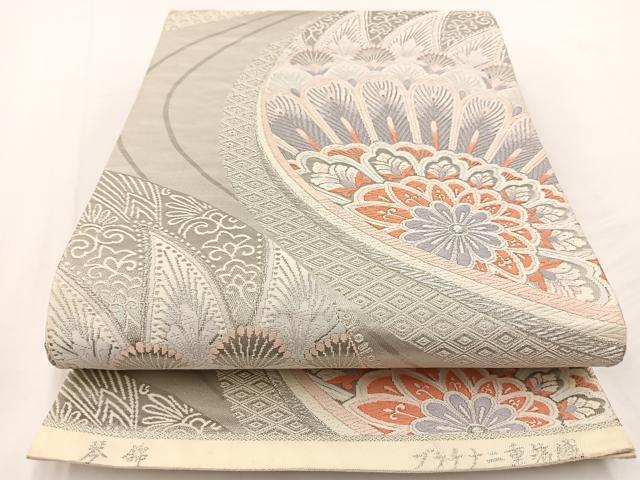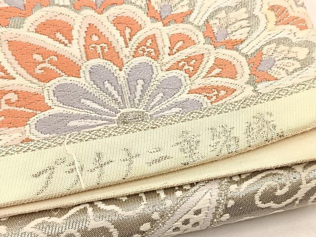 Heiwaya Kimono ◎ Six-pass pattern obi, Karaori, platinum double foil weave, Koto Nishiki, chintz, peacock feather design, pure silk, exquisite item, BAAV7530yc