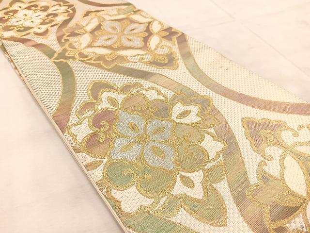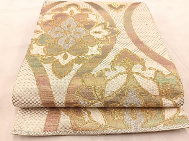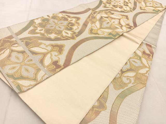 Heiwaya Kimono ◎ Six-pass pattern obi, Karaori, Tatewaku flower diamond pattern, gold and silver thread, pure silk, exquisite item, BAAU9510yc