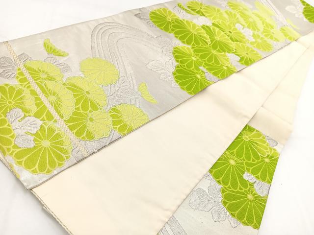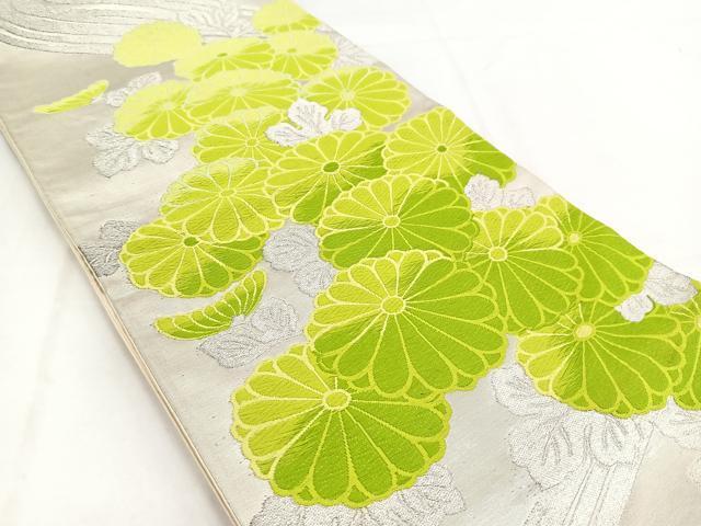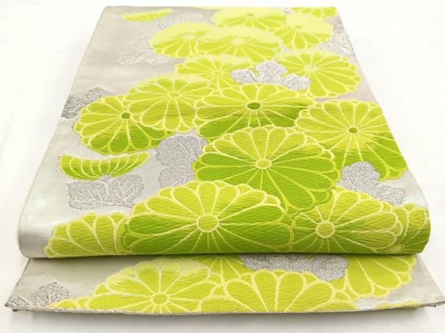 Heiwaya Kimono ◎ Six-pass pattern obi, Karaori weave, chrysanthemum design, silver thread, pure silk, exquisite item, BAAV7784yc