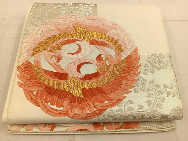 Heiwaya Kimono ◎ Six-pass pattern obi, Karaori weave, double crane and flower design, gold and silver thread, pure silk, exquisite item, BAAW1565mz