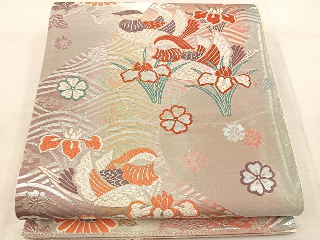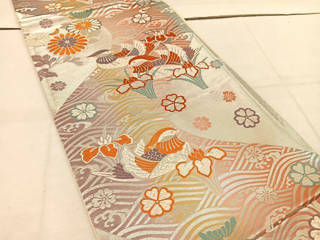 Heiwaya Kimono ◎ Six-pass pattern obi, Karaori weave, mandarin duck and flower design, silver thread, pure silk, exquisite item, BAAW1020mz
