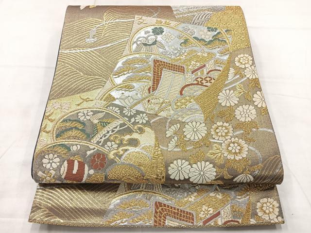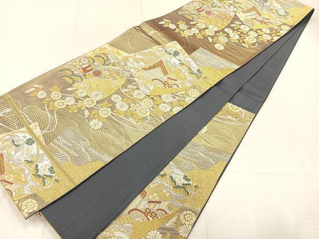 Heiwaya Kimono ◎ Six-pass pattern obi, Karaori weave, standing wave auspicious flower design, gold and silver thread, pure silk, exquisite item AABE2941uk