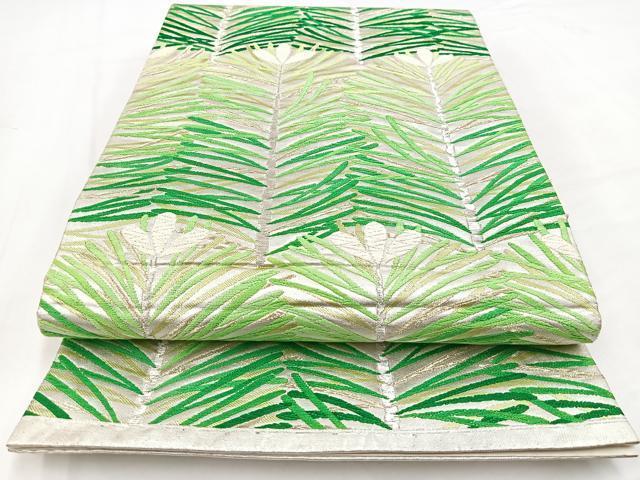 Heiwaya Kimono ◎ Six-pass pattern obi, Karaori weave, young pine needle design, gold and silver thread, pure silk, exquisite, unused, BAAV7730yc