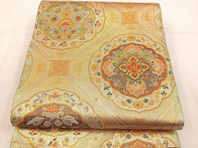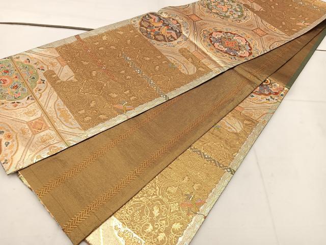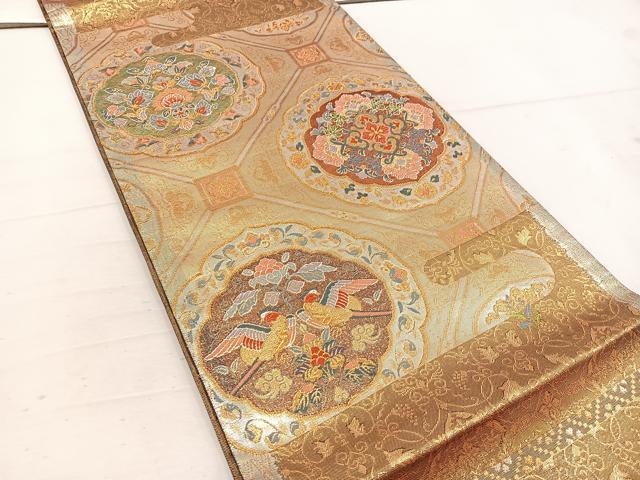 Heiwaya Kimono ◎ Six-Piece Pattern Obi, Karaori, Dawn, Flower and Bird Design, Gold Thread, Pure Silk, Excellent Item, BAAV9308mz