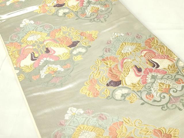 Heiwaya Kimono ◎ Six-Piece Pattern Obi, Karaori, Mandarin Duck and Flower Design, Gold and Silver Thread, Pure Silk, Excellent Quality, DAAZ9156qp