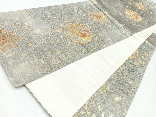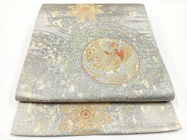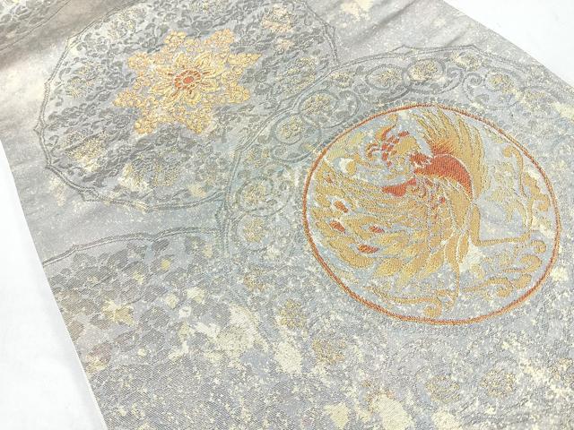 Heiwaya Kimono ◎ Six-Piece Pattern Obi with Phoenix and Flower Circle Design, Gold Thread and Dried Leaf, Pure Silk, Excellent Quality, CABB0962nb