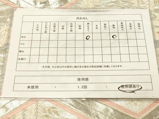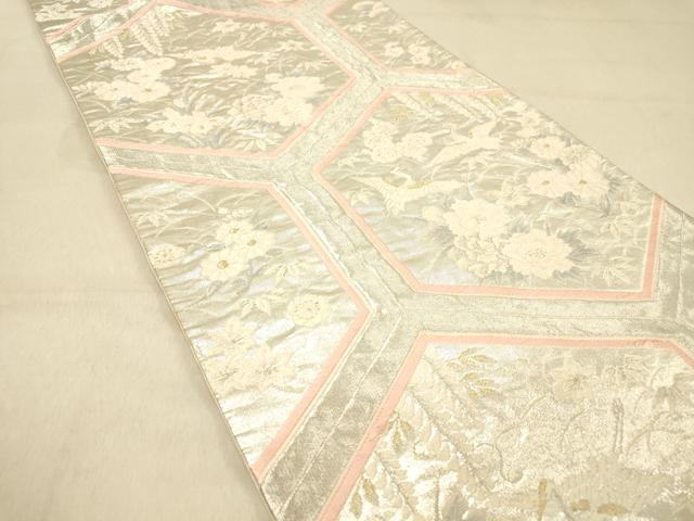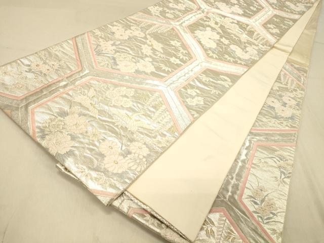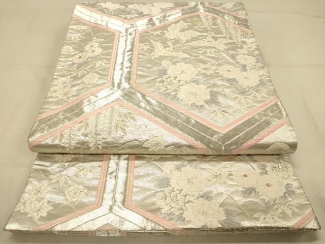 Heiwaya Kimono ◎ Six-Piece Pattern Obi with Tortoiseshell, Flying Crane, and Flower Design, Gold and Silver Thread, Pure Silk, Excellent Item, DAAZ3984jm