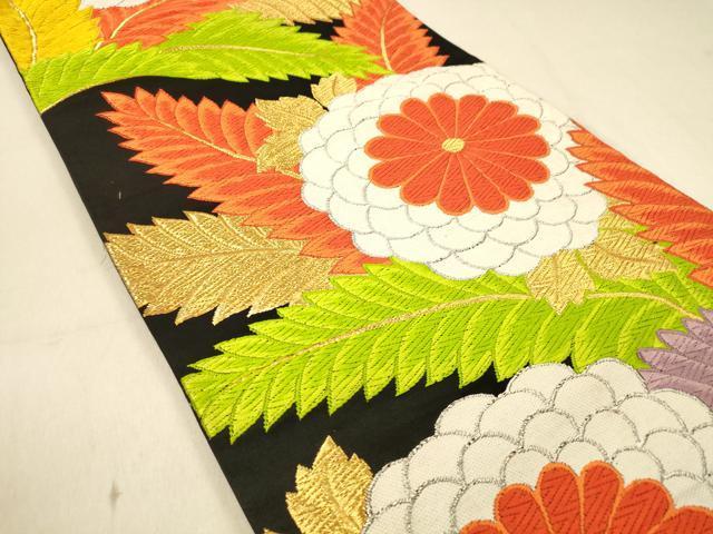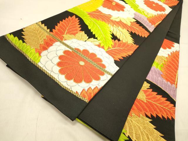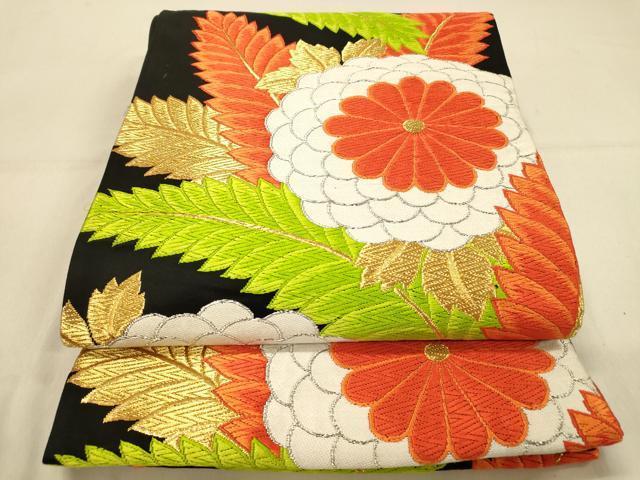 Heiwaya Kimono ◎ Six-way Pattern Obi, Karaori, Chrysanthemum Design, Black Background with Gold Thread, Pure Silk, Excellent Quality, DAAX6333jm
