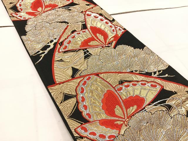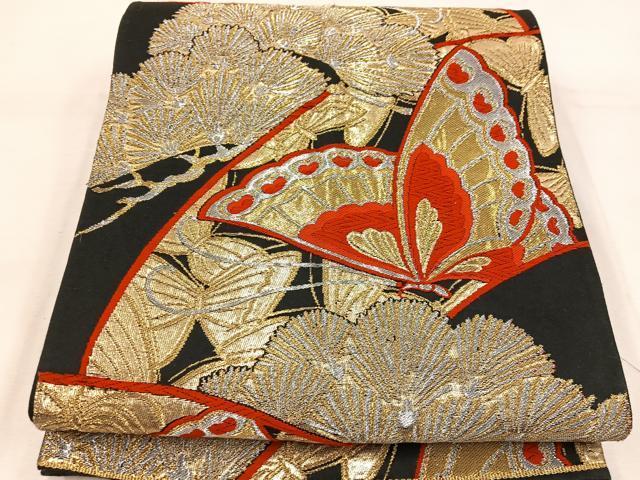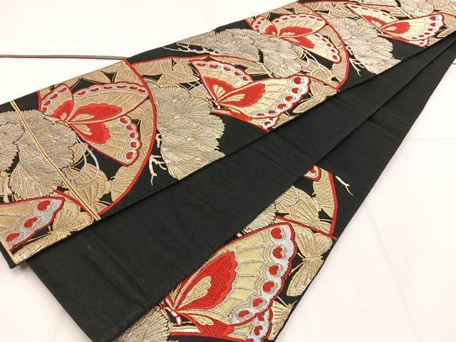 Heiwaya Kimono ◎ Six-way Pattern Obi (Sash), Karaori Weave, Dancing Butterfly and Flower Design, Black Background, Gold and Silver Thread, Pure Silk, Excellent Item, BAAV9260mz