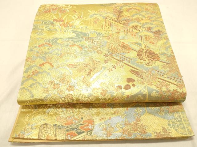 Heiwaya Kimono ◎ Six-way Pattern Obi, Treasure Tomb, Portrait and Landscape Design, Gold Thread, Pure Silk, Excellent Item, DAAX0843jm