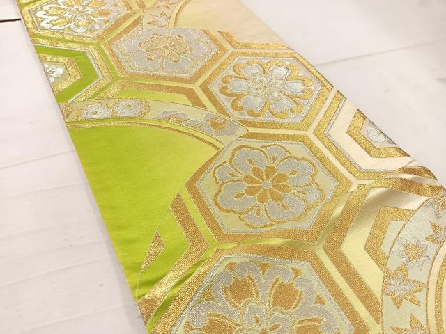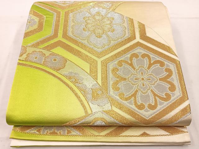 Heiwaya Kimono ◎ Six-way Pattern Obi with Tortoiseshell and Floral Design, Gold and Silver Thread, Pure Silk, Excellent Item, BAAW1078mz