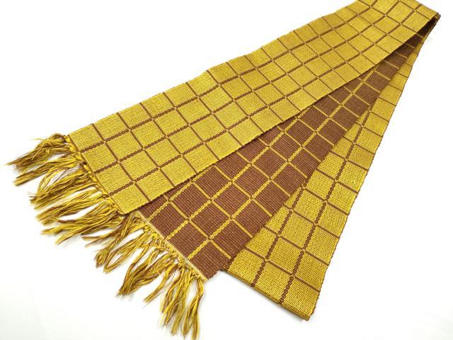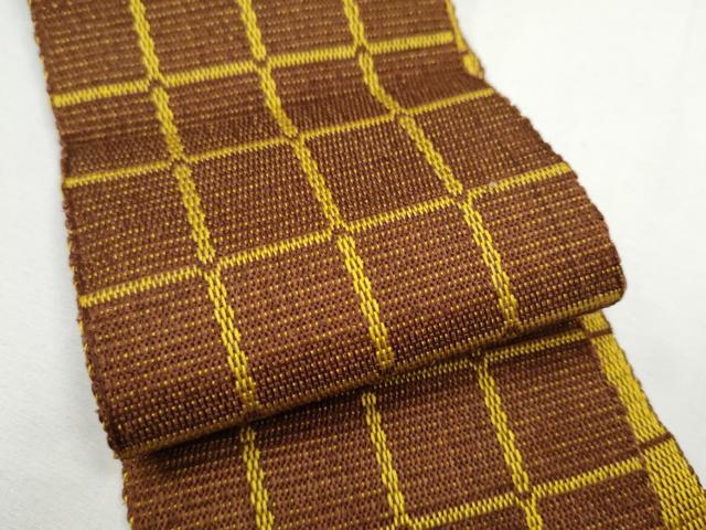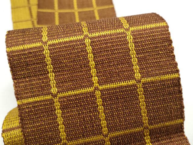 Heiwaya Kimono ● Authentic Kijōhachijō Men's Obi (Sash) with Checkered Pattern, Pure Silk, Excellent Quality, CABE4723hy