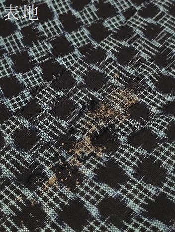 状態は接写画像のように表地所々に薄い汚れ、表地中程に穴開きがございます。