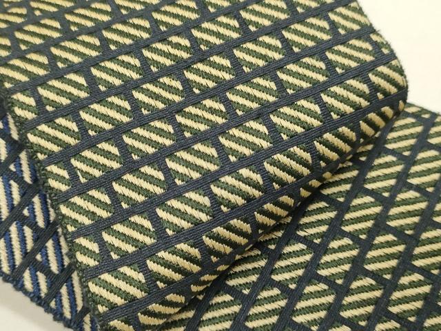 Heiwaya Kimono ● Men's Authentic Chikuzen Hakata Weave Obi (Sash) with Horizontal Stripe Pattern, Pure Silk, Excellent Quality, DABD2219du