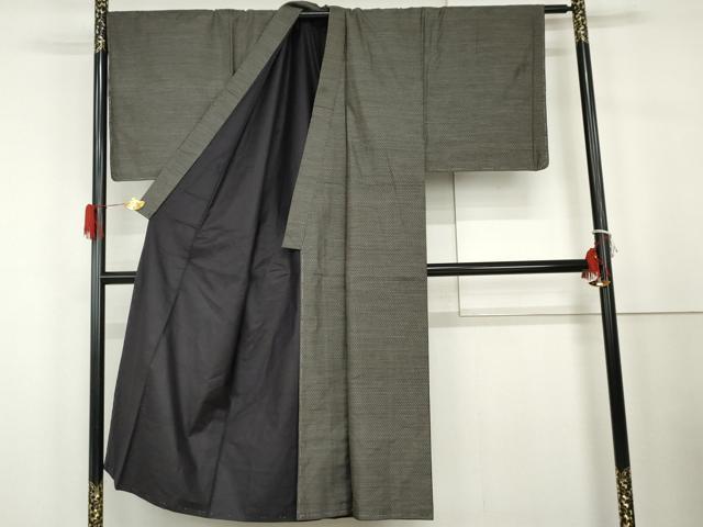 Heiwaya Kimono ● Men's Authentic Oshima Tsumugi Ensemble, Checkered Pattern, Pure Silk, Excellent Quality, Unused, AABH3665cs