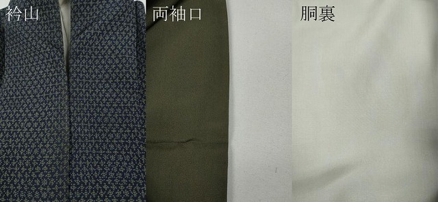 着物の状態は接写画像のように衿山・両袖口・胴裏に薄い汚れがございますが