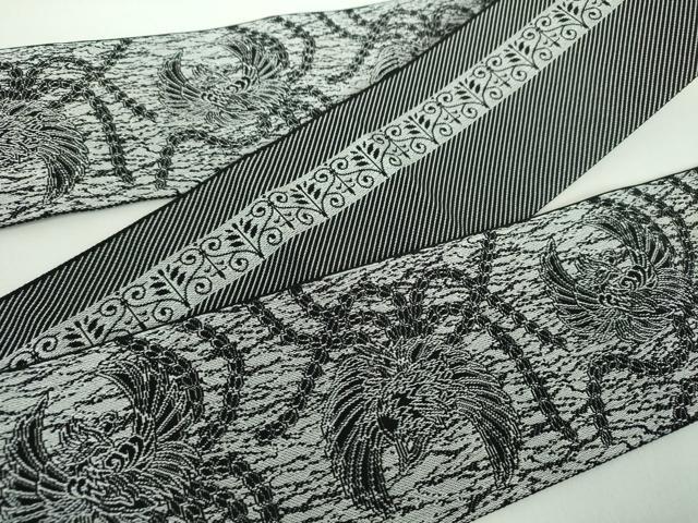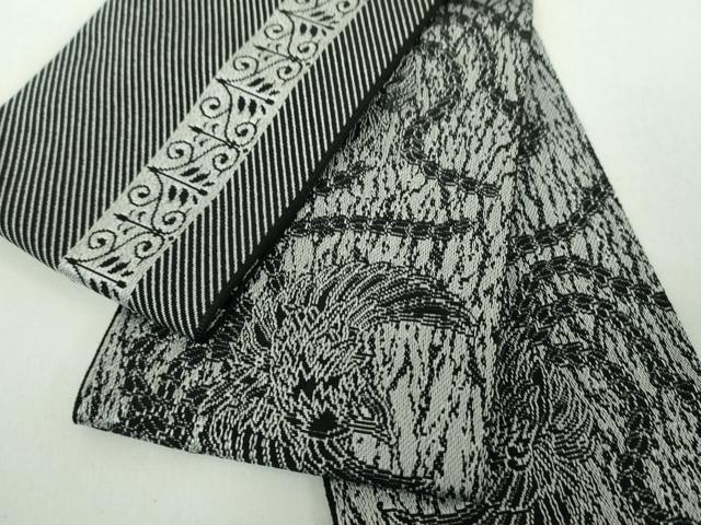 Heiwaya Kimono ● Men's Reversible Obi Belt, Phoenix Design, Black Background, Unused, DABD1500ps