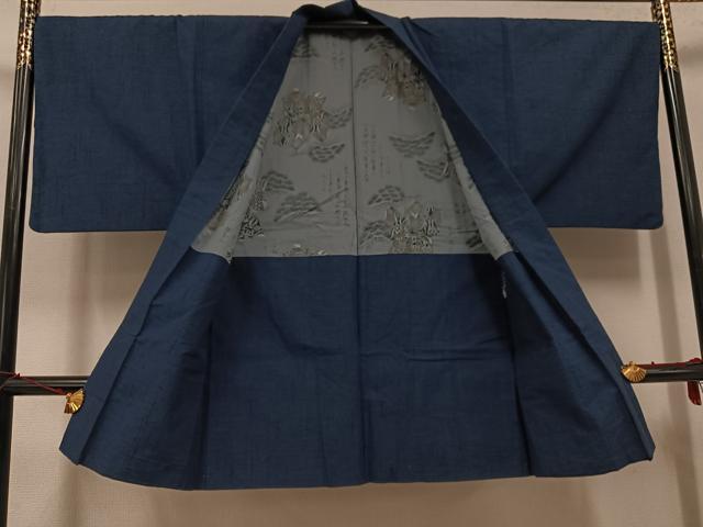 Heiwaya Kimono ● Men's Tsumugi Ensemble, Solid Color, Iron-Colored Dark Blue, Pure Silk, Excellent Quality, AABH3035ph
