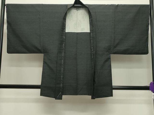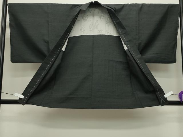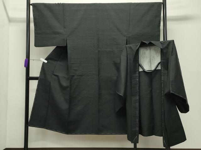 Heiwaya Kimono ● Men's Tsumugi Ensemble, Solid Color, Waxed Black, Pure Silk, Excellent Quality, Unused, CABD8892gh