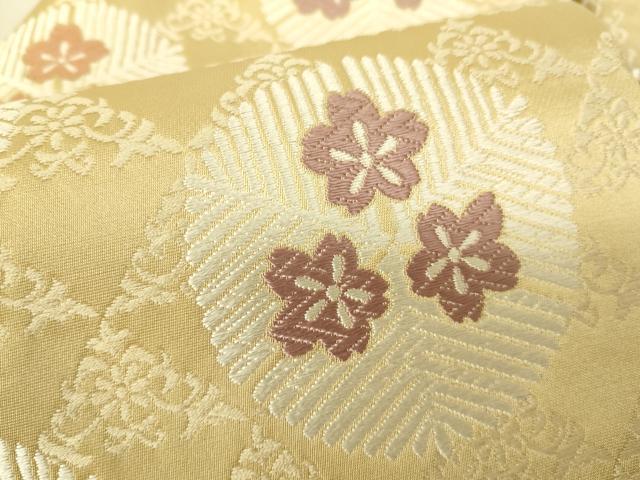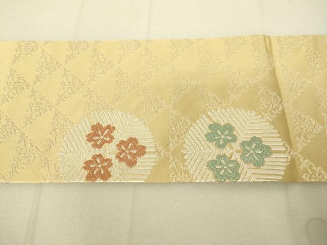 Heiwaya Kimono: 9-inch Nagoya Obi (Sash), Karaori, Cherry Blossom and Pine Needle Pattern, Pure Silk, Excellent Item, DAAX8425du