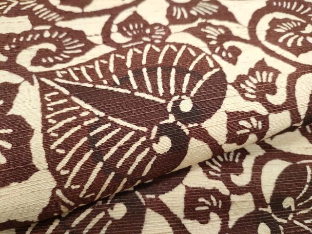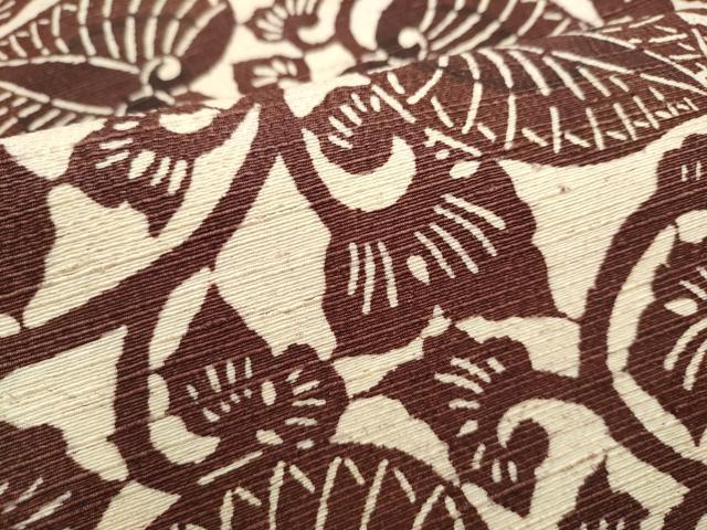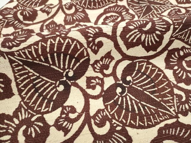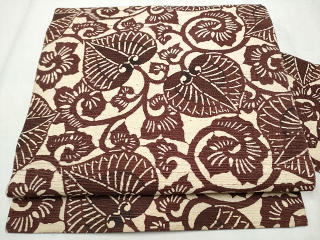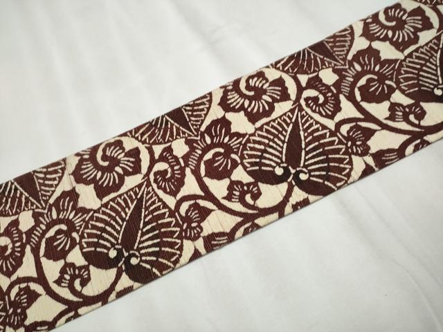 Heiwaya Kimono: 9-inch Nagoya Obi (Sash), Tsumugi Fabric, Stencil Dyed, Arabesque Pattern, Pure Silk, Excellent Quality, CABB9263hy