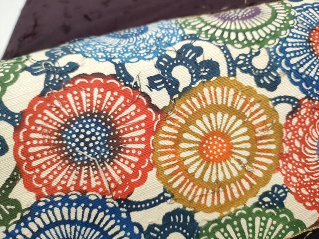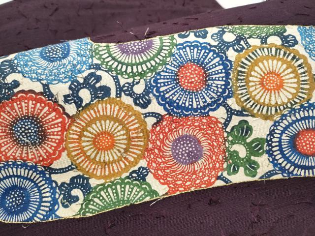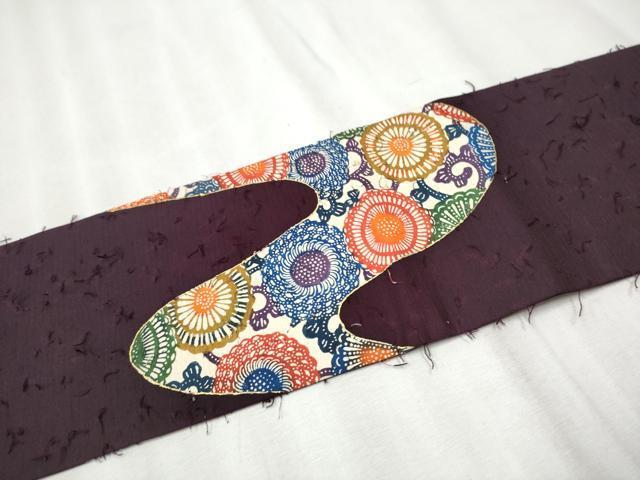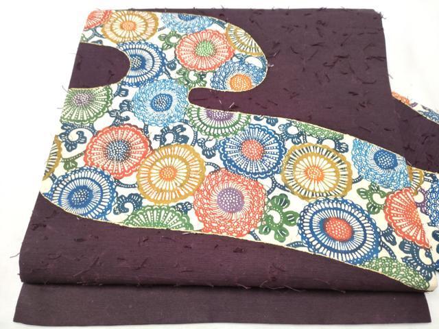 Heiwaya Kimono: 9-inch Nagoya Obi (Stencil-Dyed, Bearded Silk, with Chrysanthemum Arabesque Design) - Pure Silk, Excellent Quality, CABB9506hy