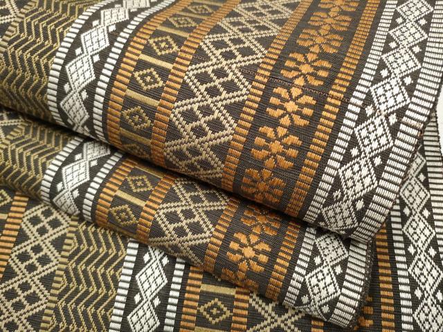 仏具のひとつである独鈷、華皿を基にした幾何学模様が織られています。