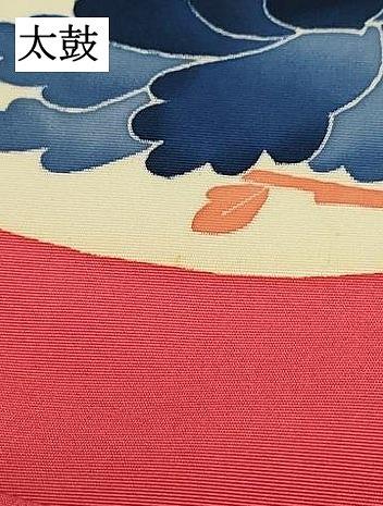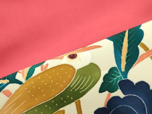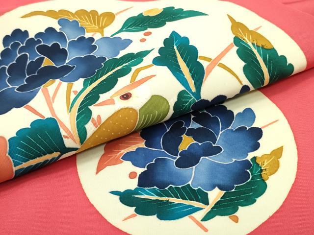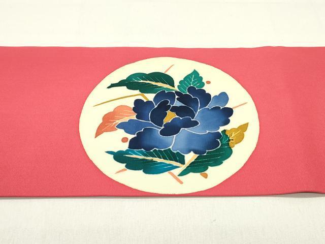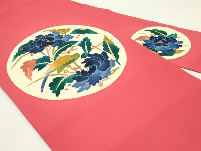 Heiwaya Kimono: Authentic Kaga Yuzen kimono by Kimura Uzan, 9-inch Nagoya obi with a round flower and bird design in crimson red, pure silk, exquisite item, DAAZ3400ob