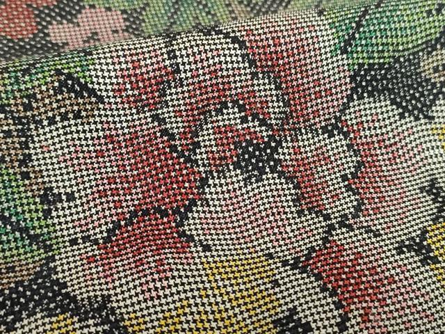 Heiwaya Kimono: Authentic Oshima Tsumugi, 7-mark, Floral Design, Pure Silk, Excellent Condition, Unused, DABA1909ps