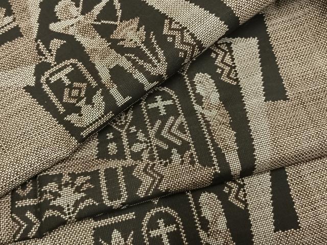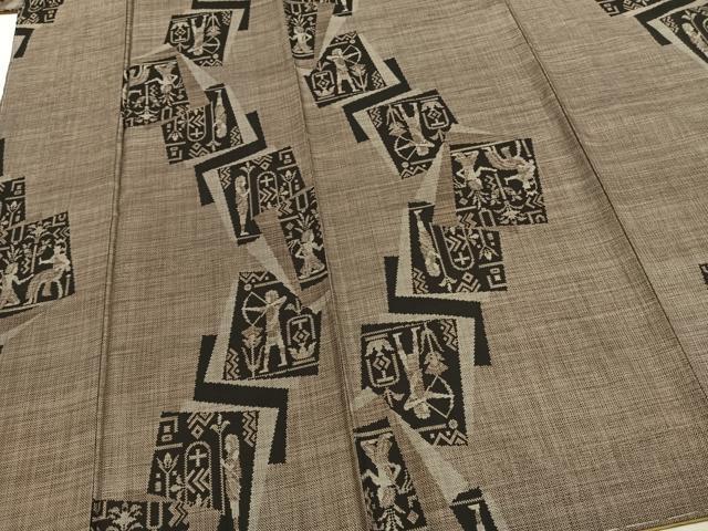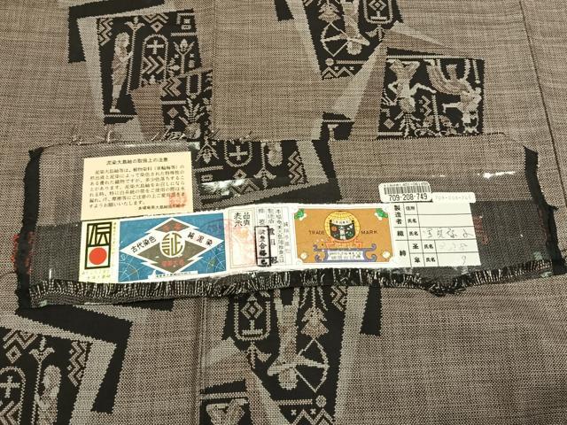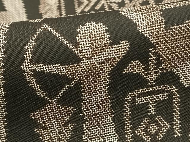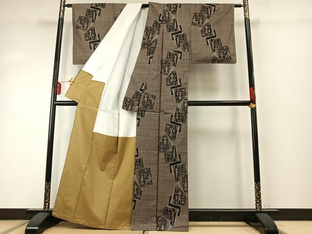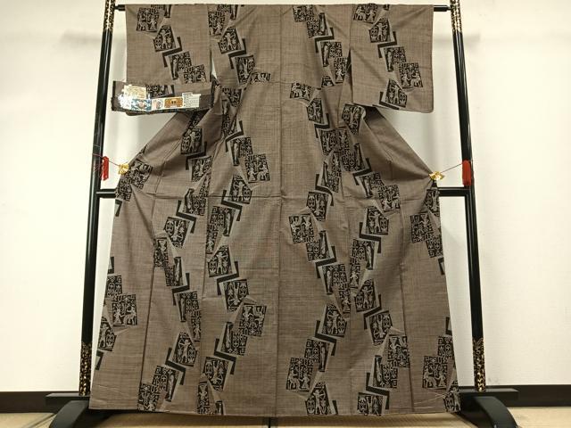 Heiwaya Kimono: Authentic Oshima Tsumugi, Katasu 9 Mark, Mud-Dyed, Handwoven, Layered Figure Design on Shikishi Paper, by Shinobu Shigeta, Certificate of Authenticity, Pure Silk, Excellent Condition, Unused, AABE5434fy
