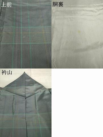 状態は接写画像のように上前・胴裏・衿山に薄い汚れがございますが