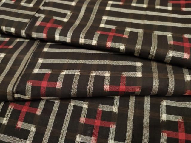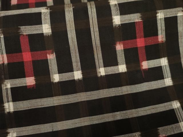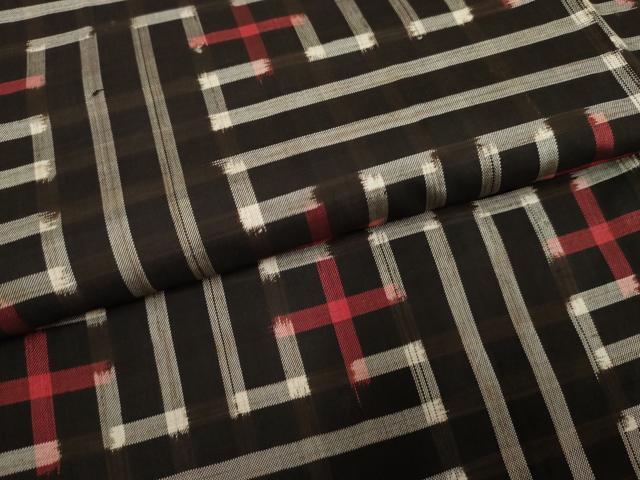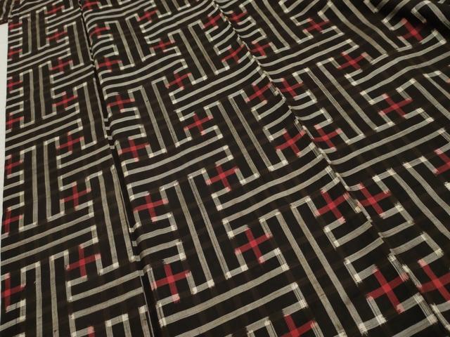 車輪梅と泥で染めた黒い地糸と絣糸を使用し、