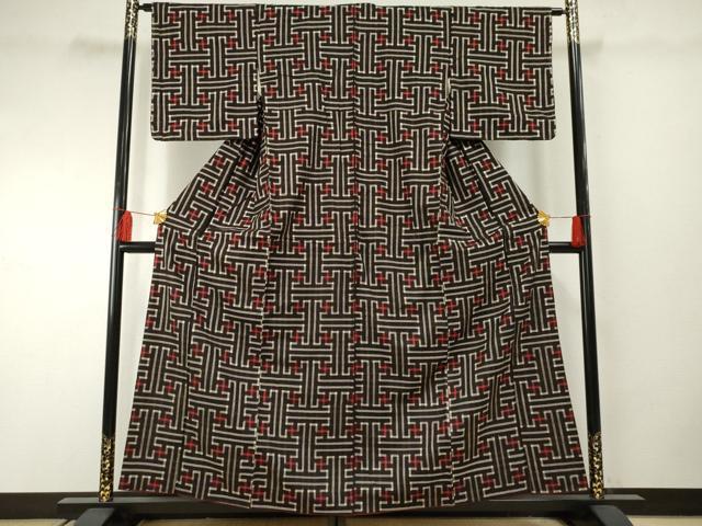 黒のザルの格子柄に十文字を交差させた模様を中心としています。
