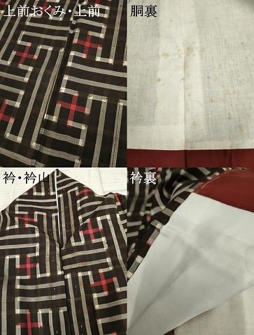 状態は接写画像のように上前・上前おくみ・衿裏に薄い汚れ、胴裏・衿・衿山に汚れがございますが