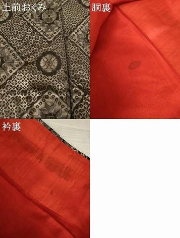 状態は接写画像のように上前おくみ・衿裏に薄い汚れ、胴裏に汚れがございますが