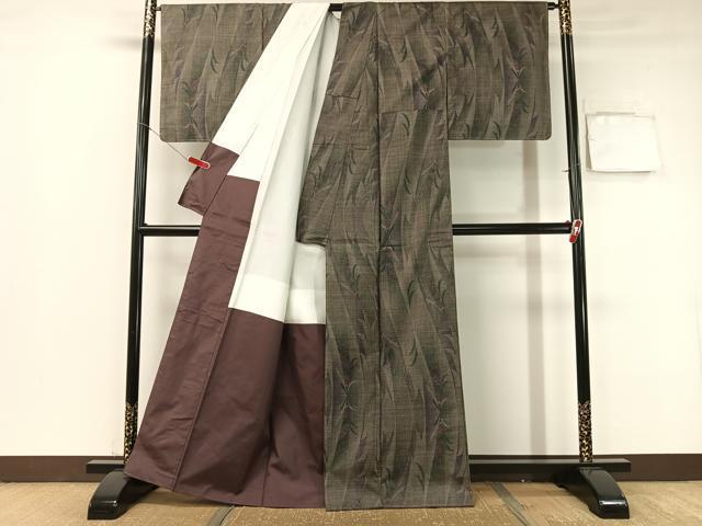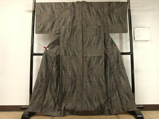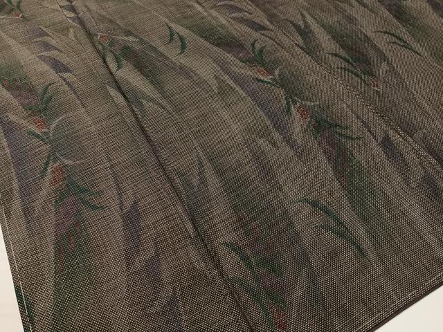 Heiwaya Kimono: Authentic Oshima Tsumugi Silk, 9-mark, Floral and Grass Design, Pure Silk, Excellent Condition, Unused, CABB4952vp