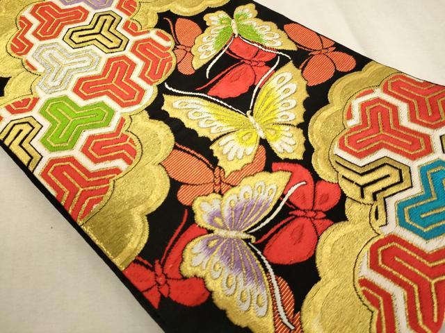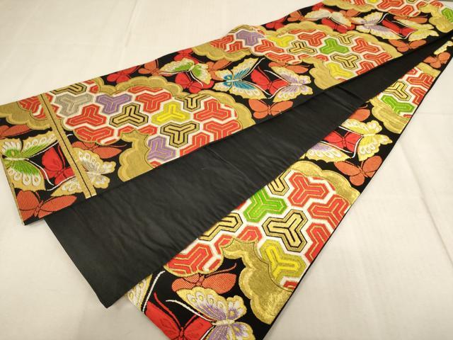 袋帯【化繊・芯なし】の状態は接写画像のように、裏地に汚れがございますが