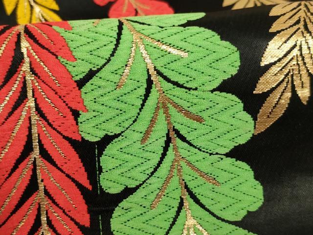 袋帯【正絹】の状態は接写画像のように、垂れ先上部に薄い汚れがございますが