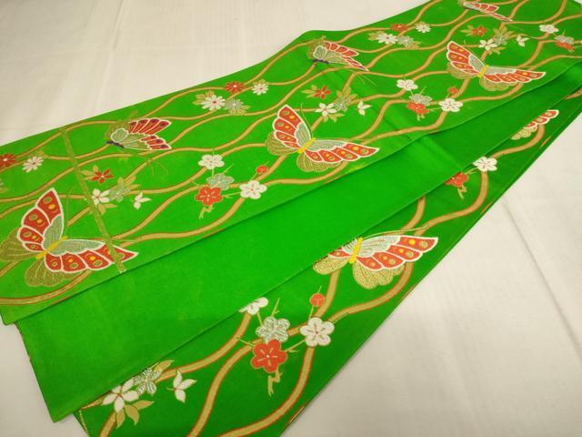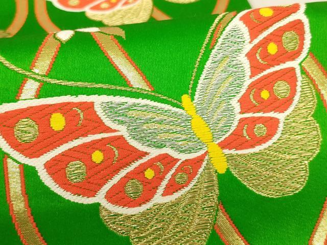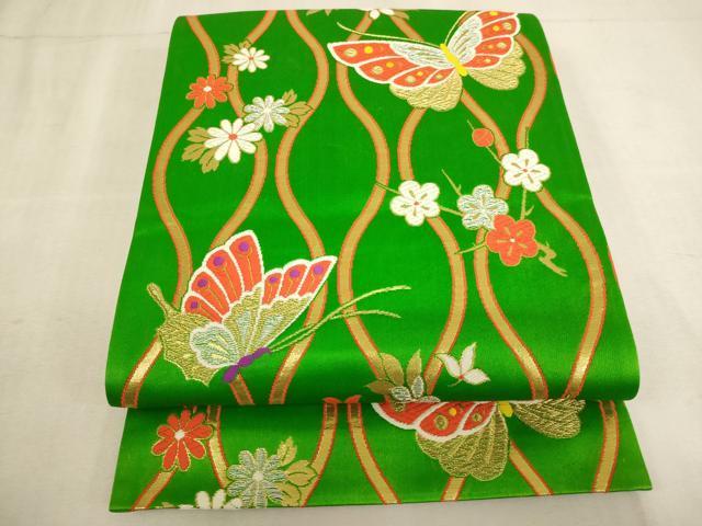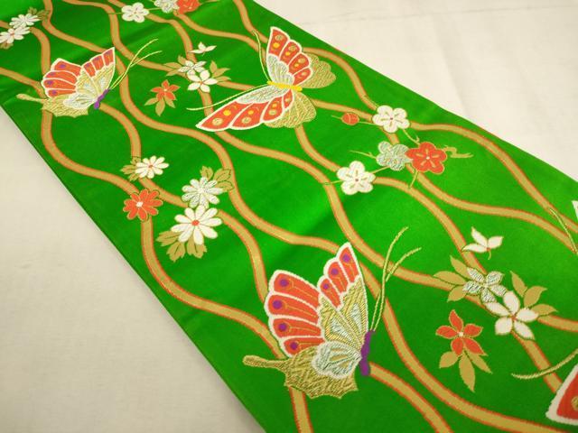 Heiwaya Kimono Children's Full-Length Pattern Fukuro Obi (Sash) - Karaori Weave, Standing Wave Flower and Butterfly Design, Gold and Silver Thread, Pure Silk, Excellent Item, AAAU5356ja