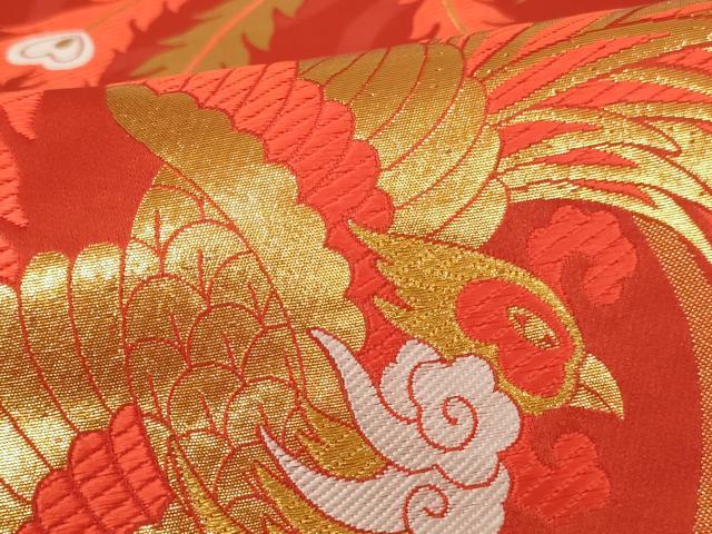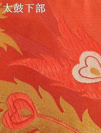 袋帯【化繊・芯なし】の状態は接写画像のように、太鼓下部に薄い汚れがございますが、