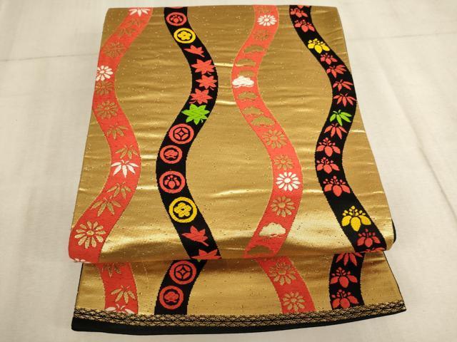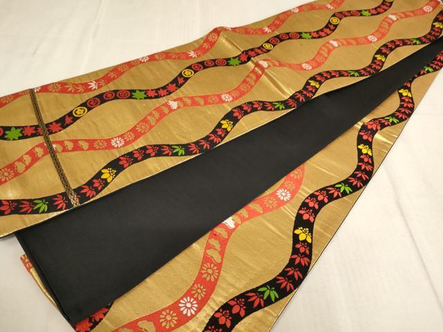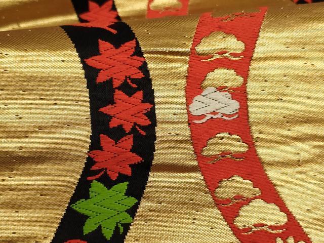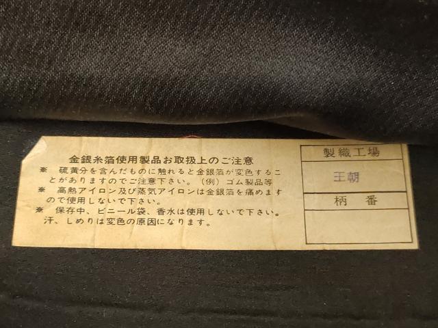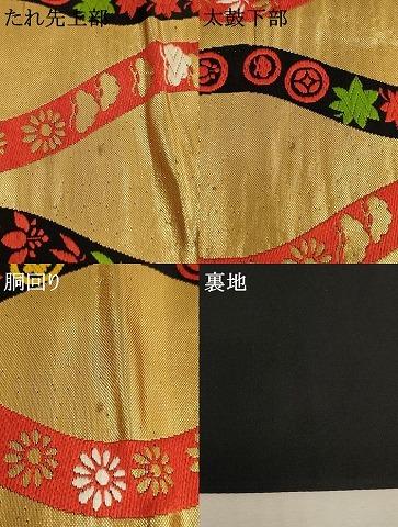 袋帯【正絹・芯なし】の状態は接写画像のように垂れ先上部・太鼓下部・胴回りに汚れ、裏地に薄い汚れがございますが