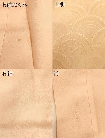 着物【正絹】の状態は接写画像のように上前おくみ・衿に汚れ、上前・右袖に薄い汚れがございますが