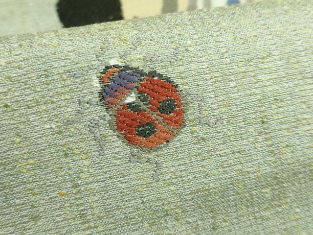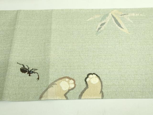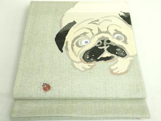 Heiwaya Kimono: Exquisite Kawase Mitsuru Taiko Drum Pattern Obi (Sash), Tsumugi Fabric, Pug and Ladybug Design, Stag Beetle Design, Oribito, Konagaya, Excellent Item, DZAB2316kh6